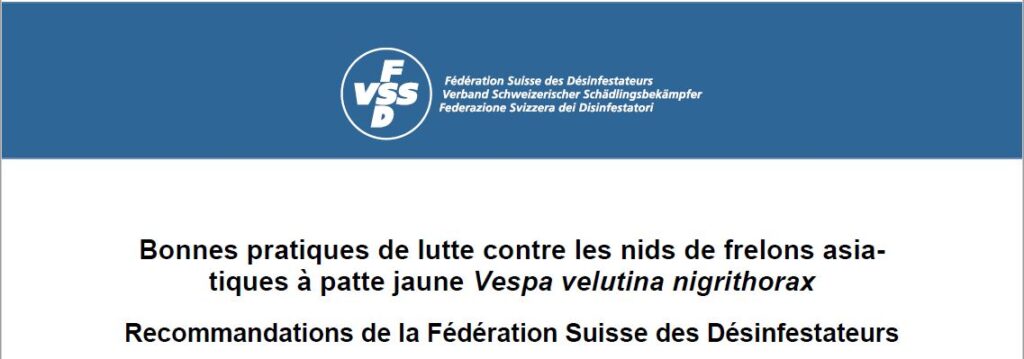 Une évaluation de différentes méthodes de traitement des nids qui constituent une alternative aux insecticides a débuté. Les résultats seront intégrés dans les recommandations suisses. En plus, une charte des bonnes pratiques de destruction des nids de frelons asiatiques a été développée en collaboration avec la Fédération Suisse des Désinfestateurs (FSD-VSS).
